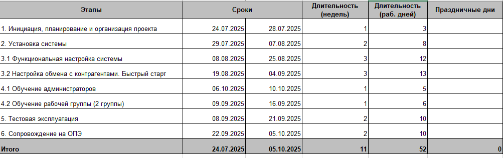 РП от вендора проведет анализ вводных данных: оценит подготовительные работы по готовности настройки интеграций, установки системы, учтет в плане праздничные и выходные дни, подсветит риски. На основе этого составит дорожную карту и согласует с клиентом.