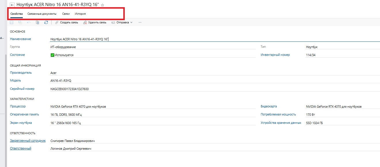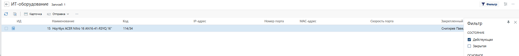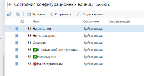 У каждой конфигурационной единицы можно наблюдать её статус: если ваш компьютер на ремонте в ИТ-отделе, то его состояние автоматически будет отображаться как «На обслуживании».