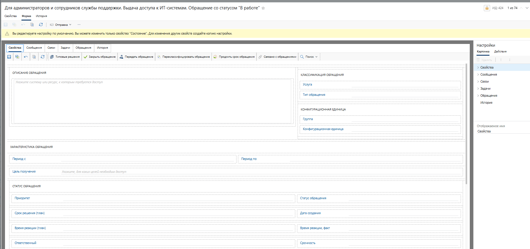 Карточки самих обращений могут быть абсолютно разными с уникальными полями под каждый запрос.