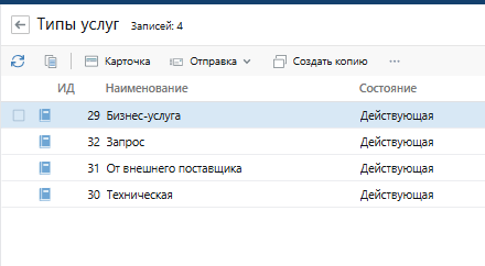 По умолчанию при поставке уже настроены 3 типа и 4 категории услуг.