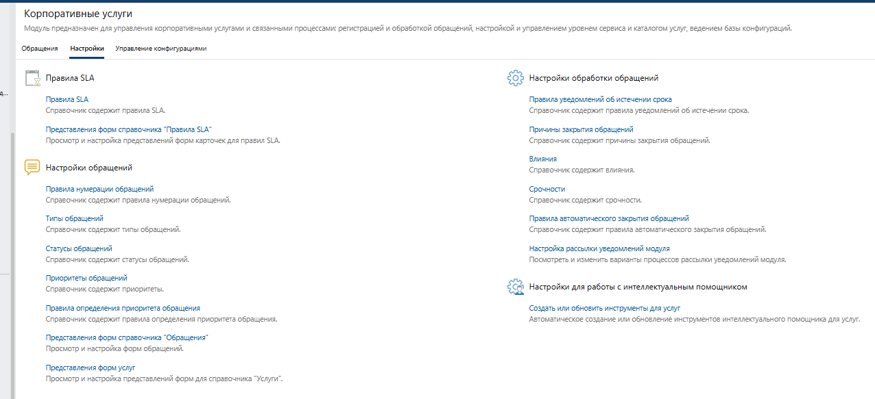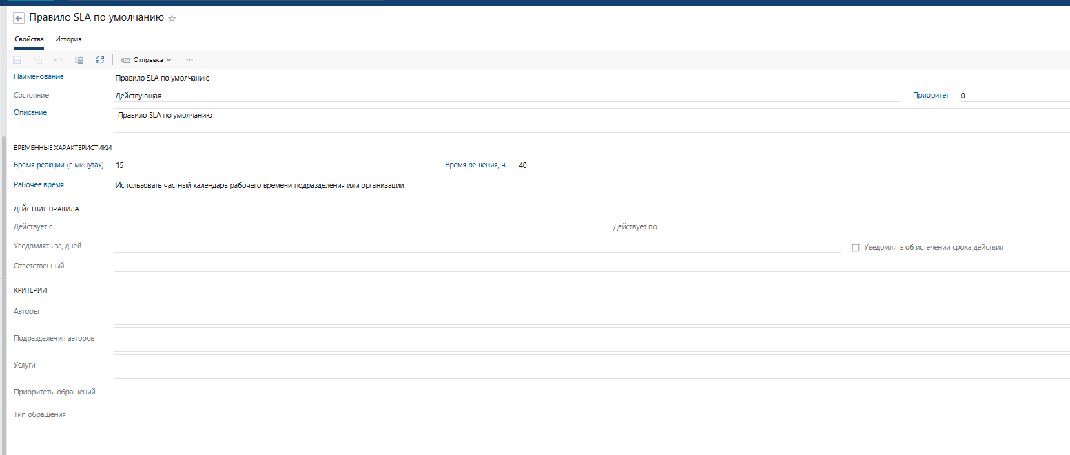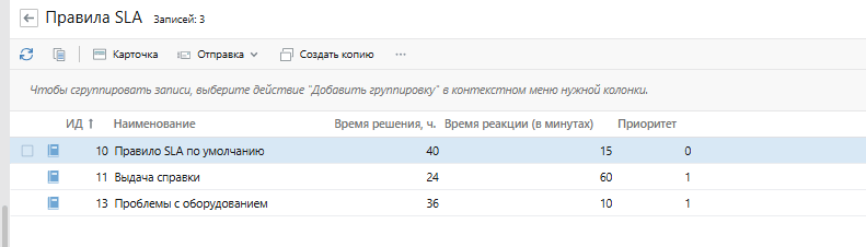Если в компании есть строгие сроки для исполнения каждого типа услуги, задать их можно в реестре «Правила SLA» (соглашение об уровне обслуживания).