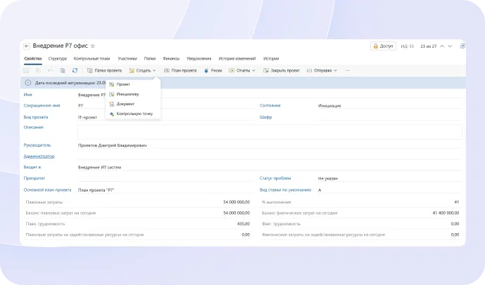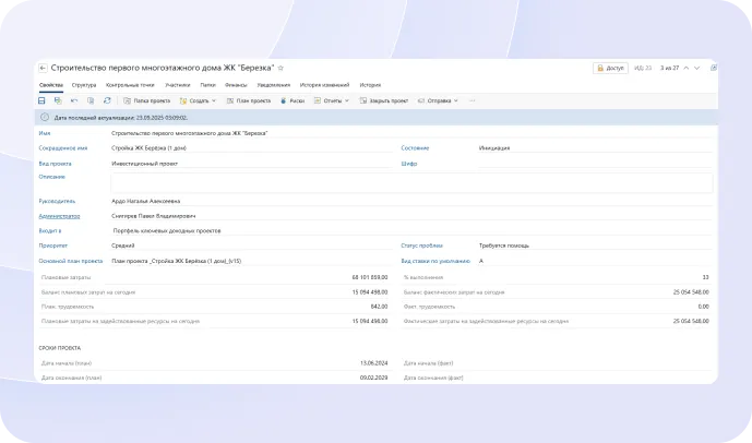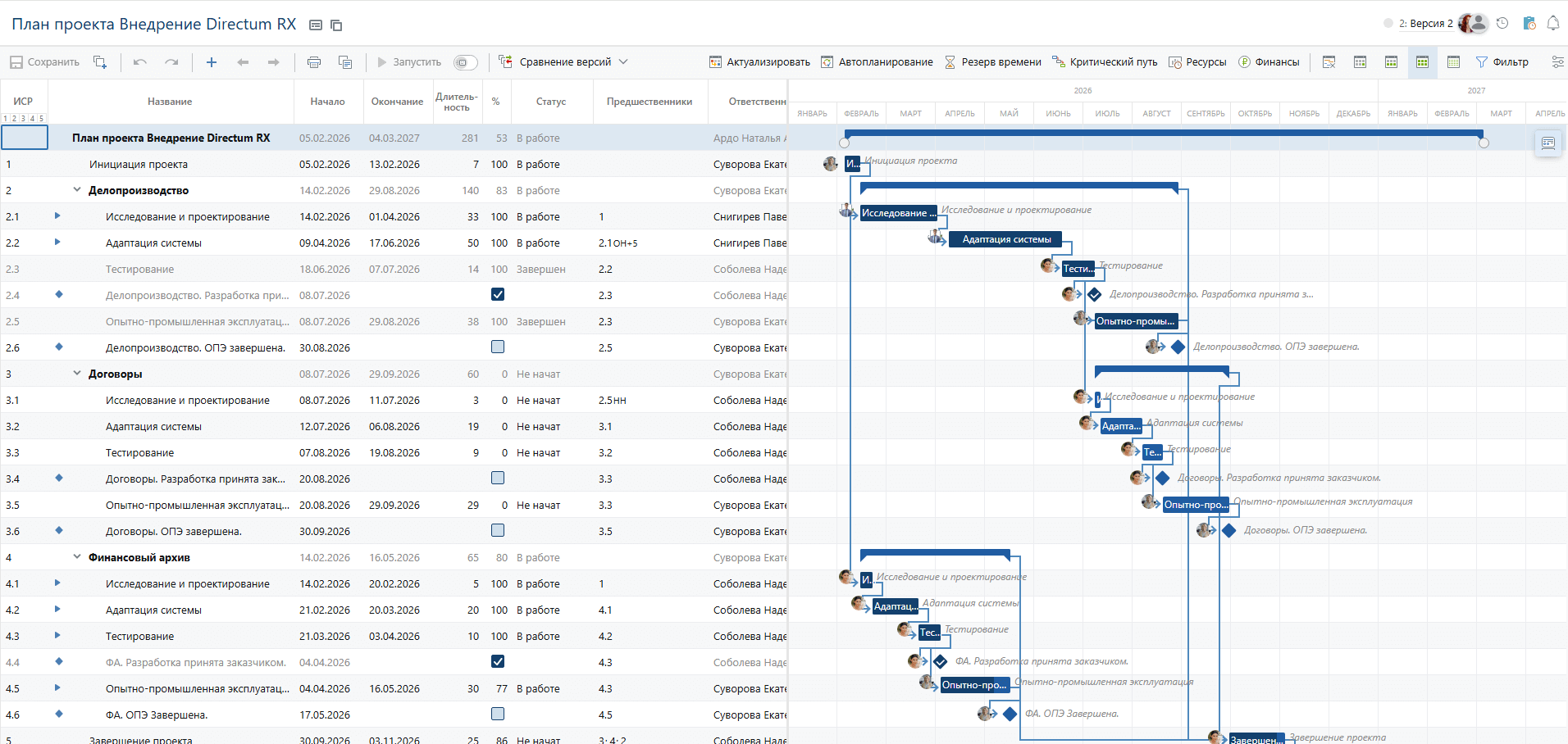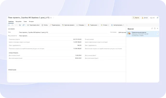 Простой и удобный инструмент для работы с документами и процессами по проекту. Планирование и контроль сроков, ресурсов, бюджетов. Идеально для команд, ценящих прозрачность и эффективность.