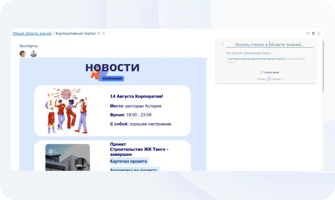 Разделяйте информацию по подразделениям, проектам, направлениям. Выделяйте экспертов в каждой области — сотрудников с глубокими компетенциями, которые смогут передавать знания коллегам. Защищайте доступ к чувствительной информации, гибко настраивая права доступа.