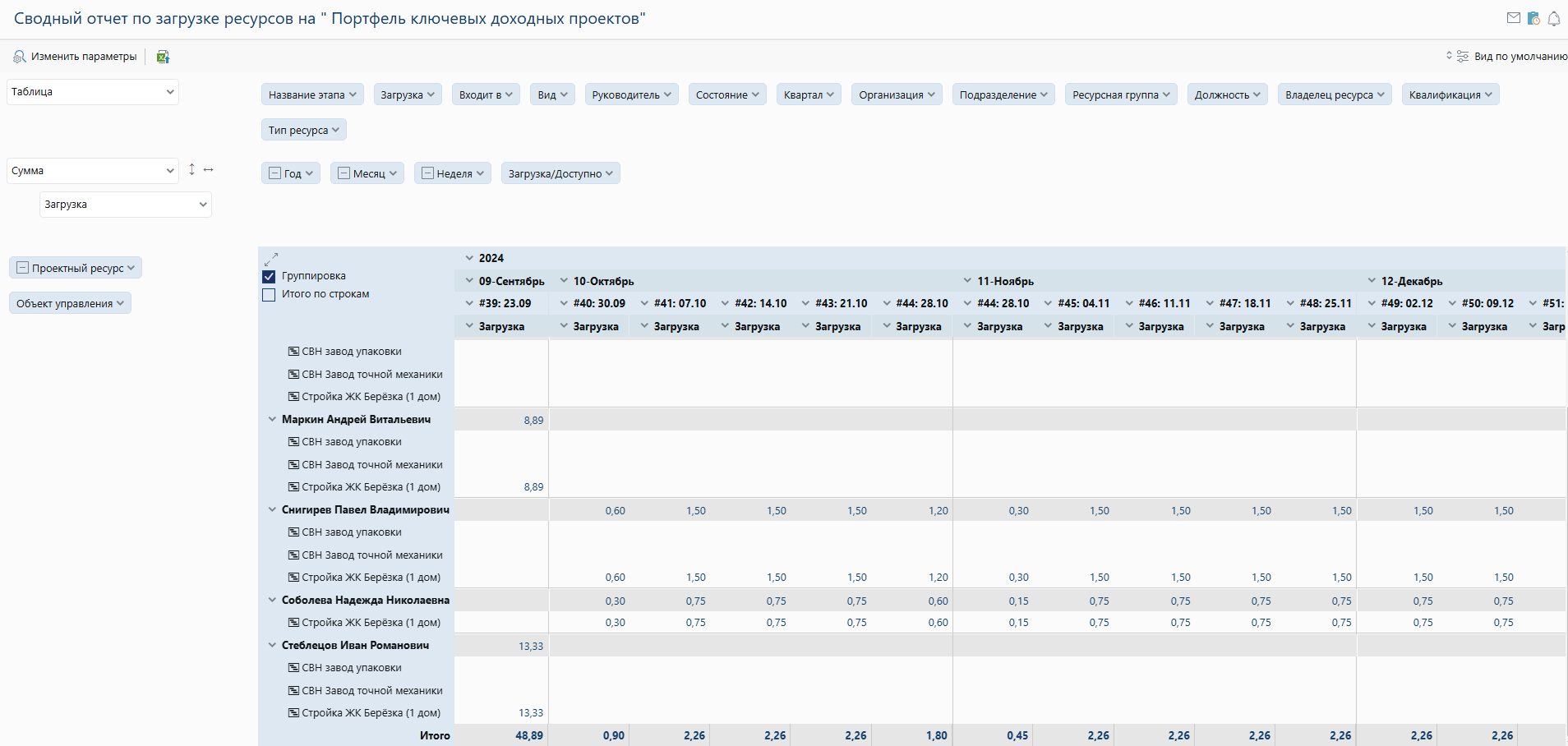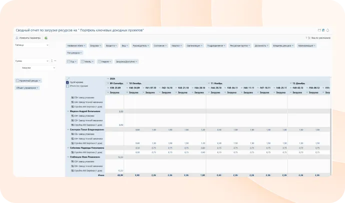 Оценивайте с помощью сводных отчетов загрузку своих подчинённых на проектах, чтобы эффективнее принимать решения и планировать внутренние процессы. Например, перераспределять ресурсы с менее приоритетных проектов на более важные.