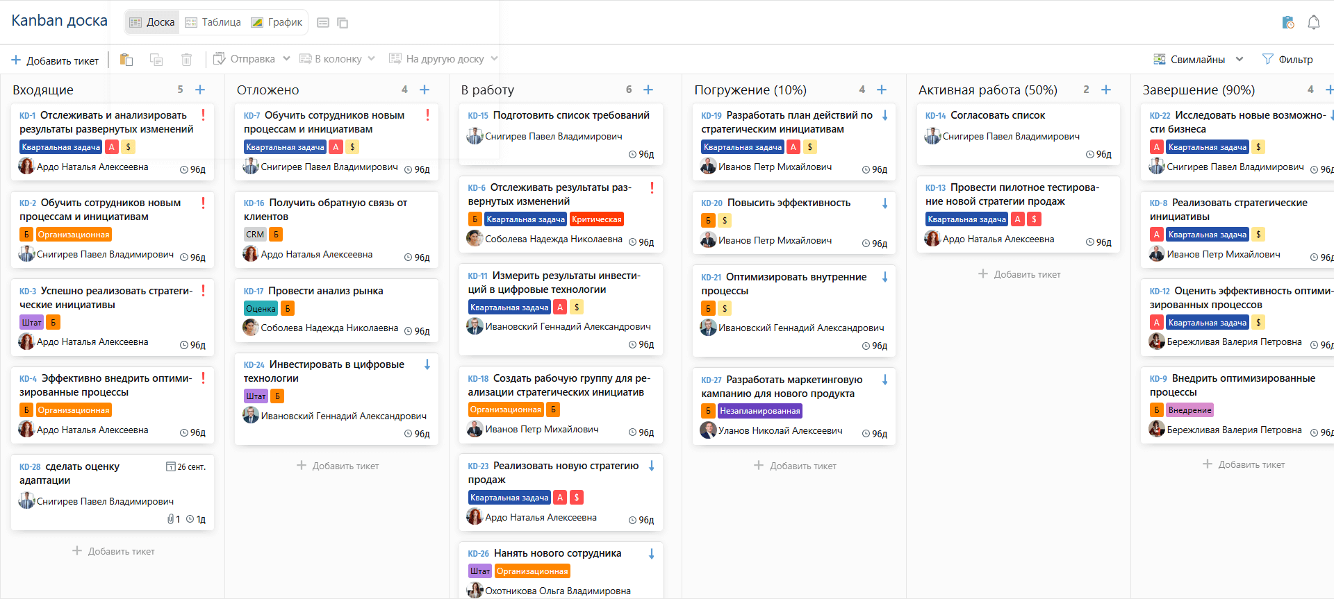 Используйте Agile-доски — визуальный инструмент для распределения и отслеживания работ: