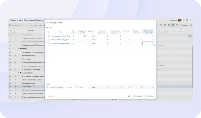 Контролируйте загрузку сотрудников, чтобы эффективно распределять ресурсы между проектами. В этом поможет отметка выполненных работ на этап проекта или на конкретную задачу на Agile-доске. Нужно лишь указать стоимость ресурса для автоматического расчета затрат по проекту. Планировать можно как по конкретным сотрудникам, так и по команде в целом.