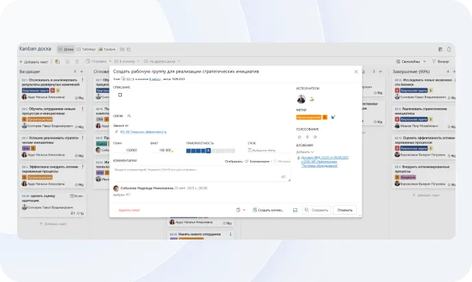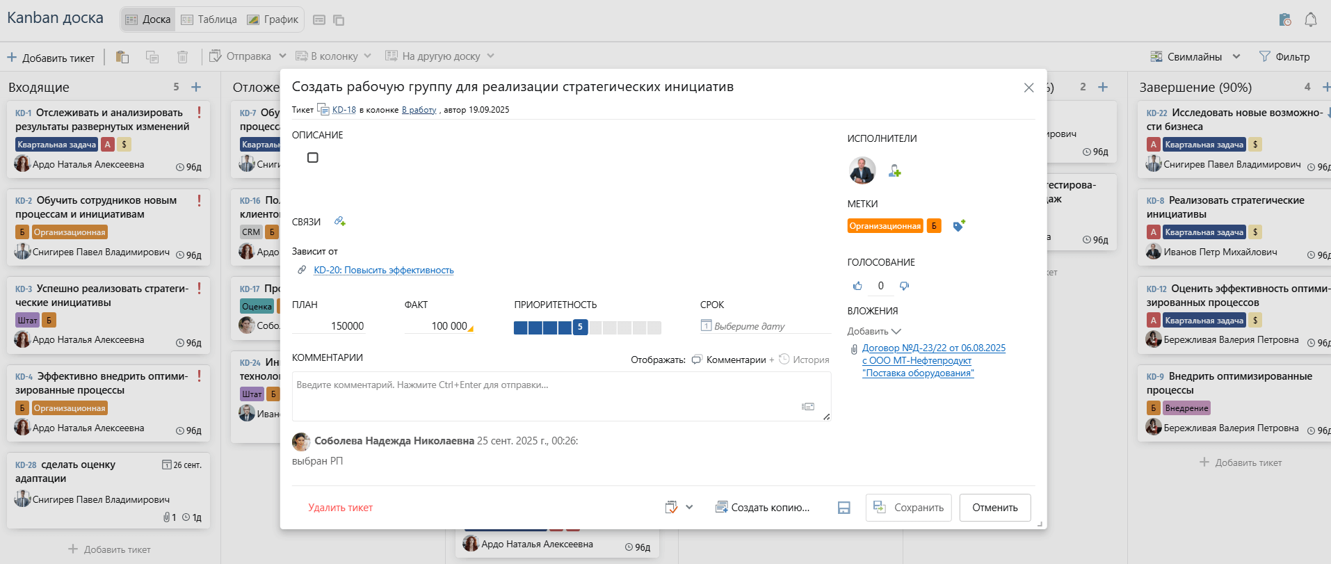 Прикрепляйте файлы, заметки и вложенные документы к задачам, чтобы не потерять информацию и упростить коммуникацию. Оставляйте комментарии к тикету для обсуждения промежуточных работ и вопросов.